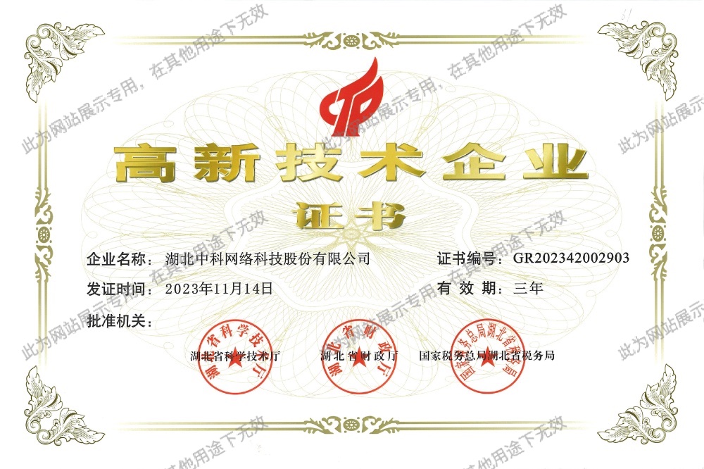 湖北中科網絡科技股份有限公司成立于1998年5月,注冊地為武漢市武昌區(qū),總部位于中國光谷。是智能化、信息化行業(yè)的領軍企業(yè),國家認定的高新技術企業(yè)、湖北省專精特新企業(yè)。